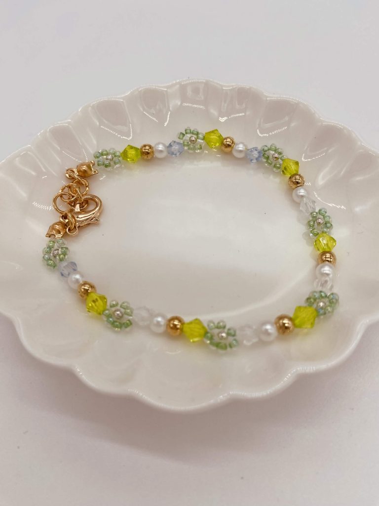 春のきらめきを手元に。【お花モチーフの推し色ブレスレット】