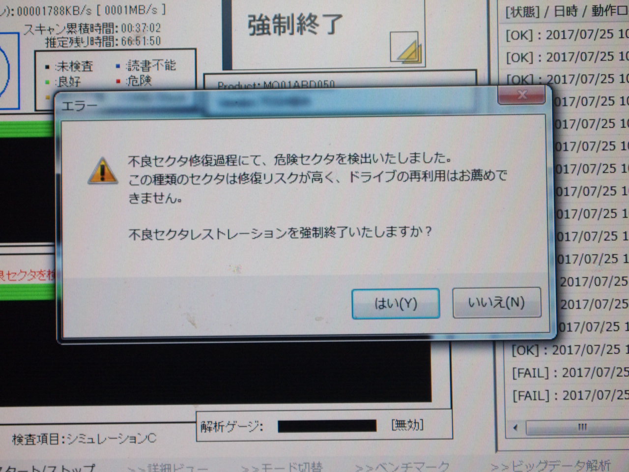 >>実行したところHDDが読み取れなくなりました。そのまま放置へ。