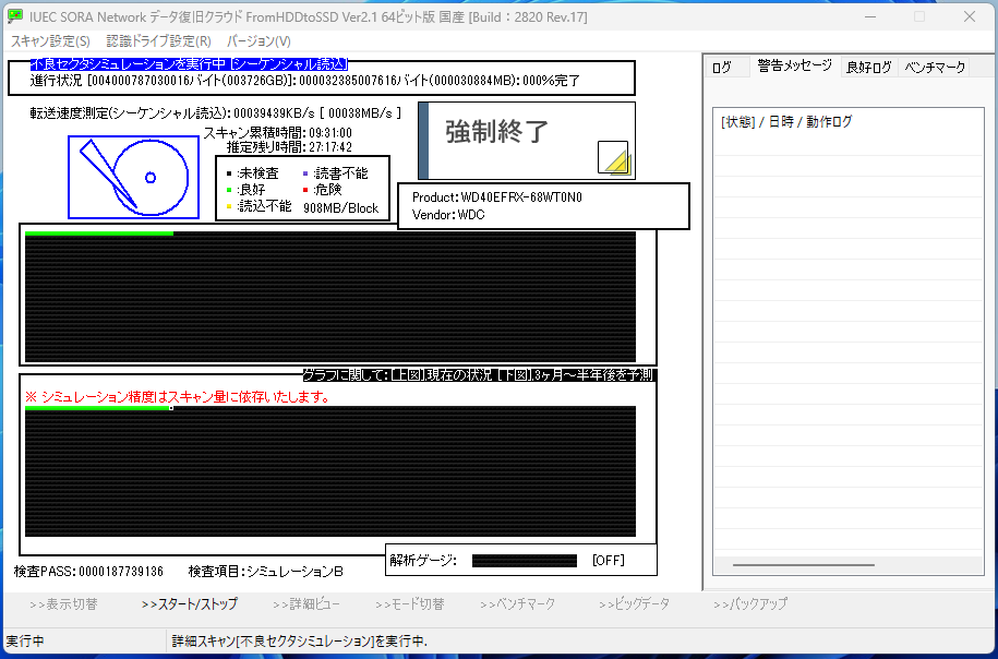 それから➁をクリックすることで不良セクタシミュレーションが開始いたします。