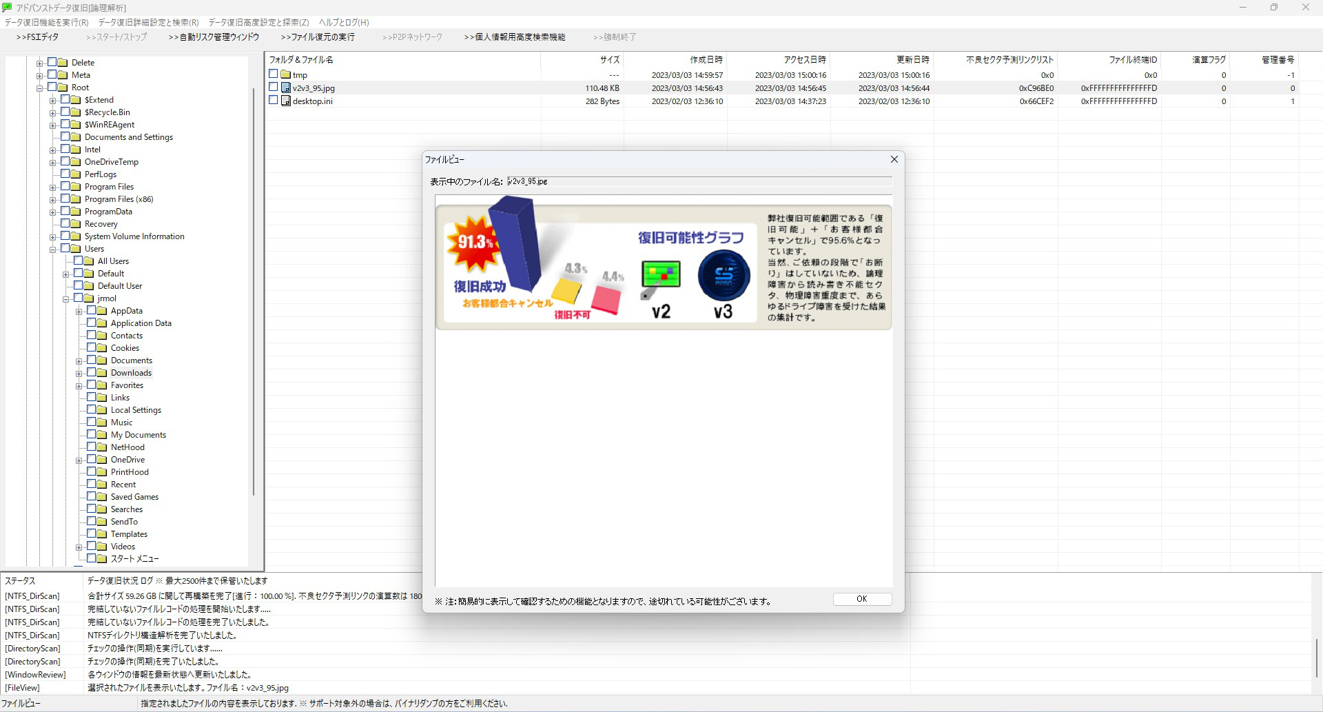 - 復旧候補として表示されたファイルをダブルクリックするだけで内蔵ビューアが自動的に起動します。