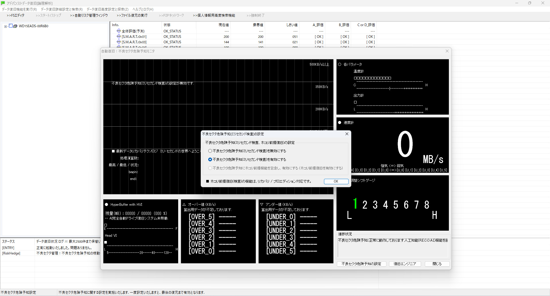 「不良セクタ危険予知(ミリセカンド検査)」 を必ず有効にしてください。これは障害予知に基づいたスキャン精度向上機能です。
