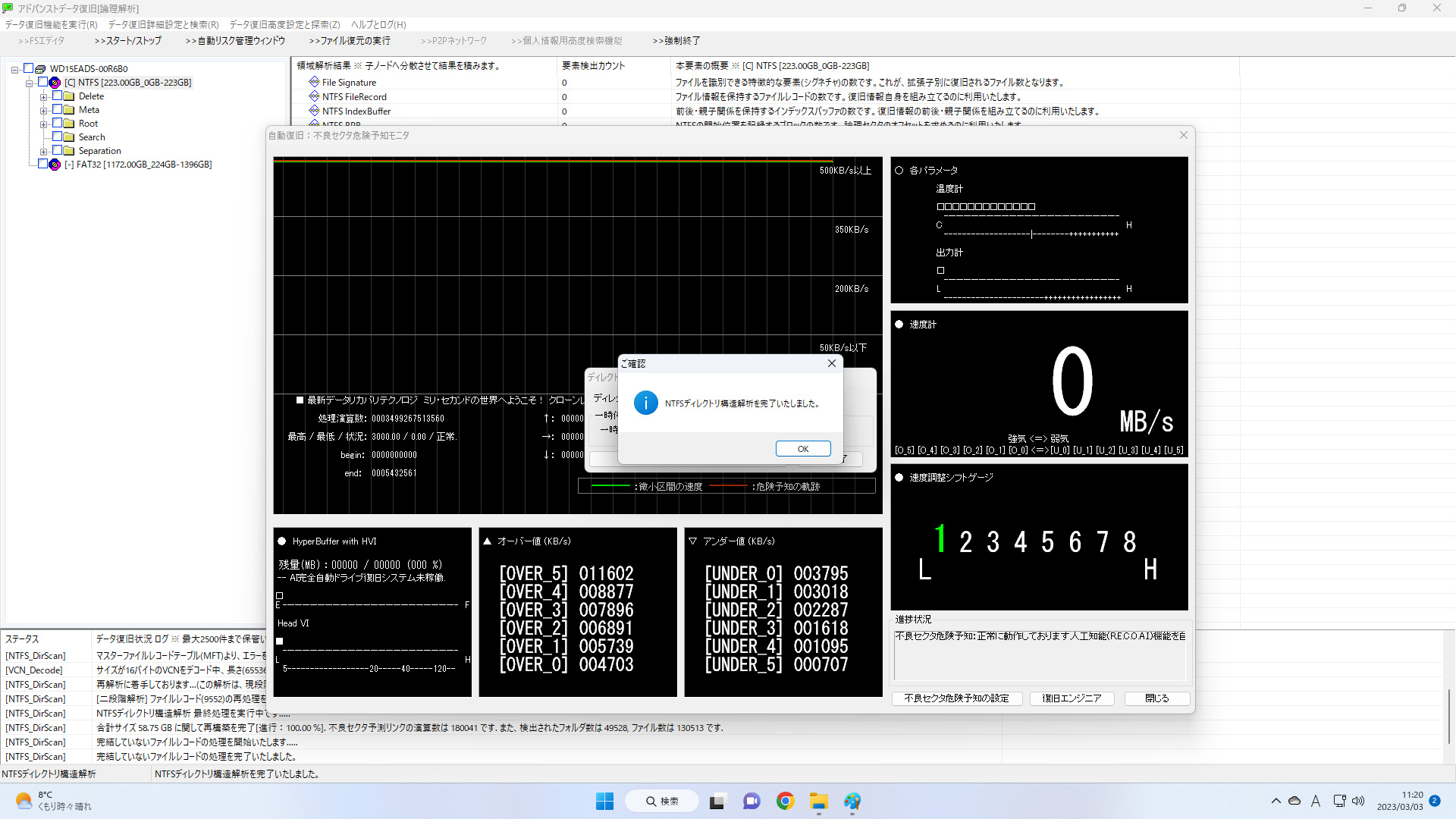 設定完了後に救出対象領域を右クリック → 「ディレクトリ構造解析」 を選択してください。解析には数分を要します。