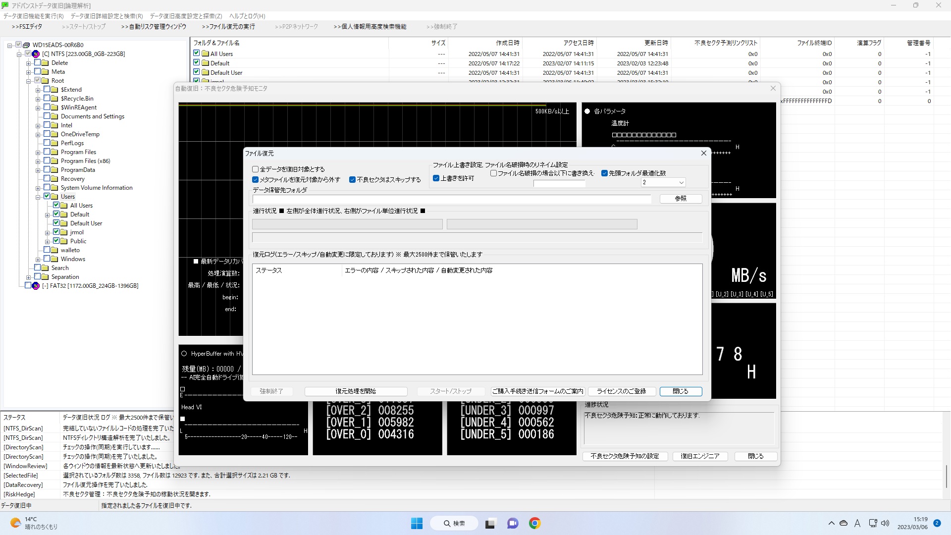 - 2番目「ファイルレコードの損傷度を自動解析し最適な方を選択する」にチェックします。不良セクタによって失われた情報を自動補完する復元モードが有効化されます。