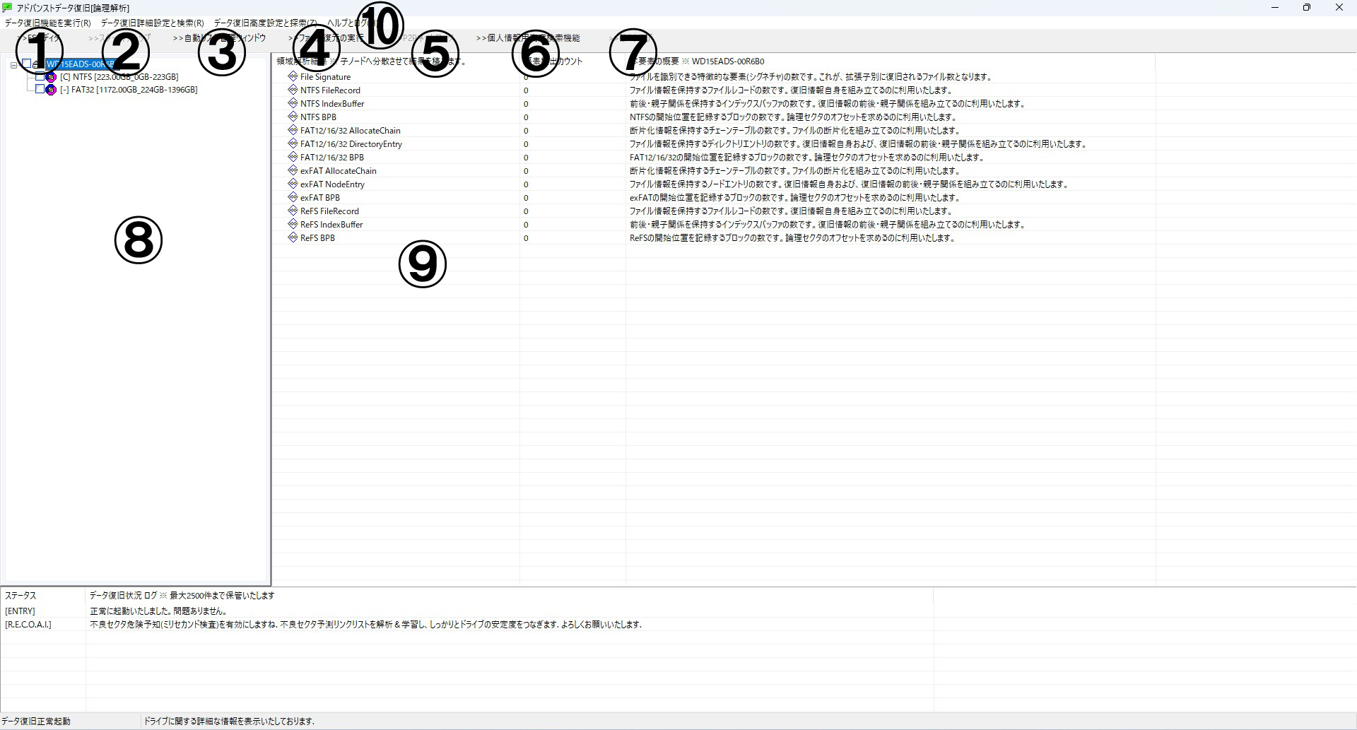 - ドライブノード:復旧対象となるドライブの名称が最上部に表示されます。