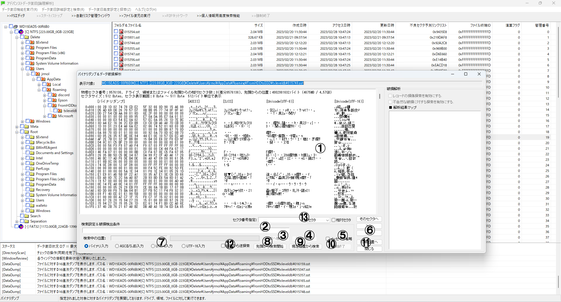 - フォルダノード:抽出された各フォルダが表示され内部構造の確認や復旧処理に進めます。