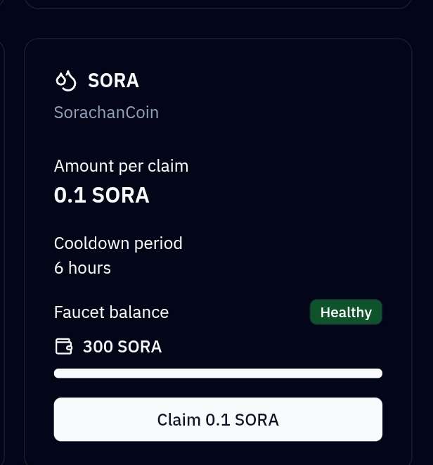 以下URL先のKlingEx – Faucetで提供しており、6時間おきに0.1SORAを取得することができます。