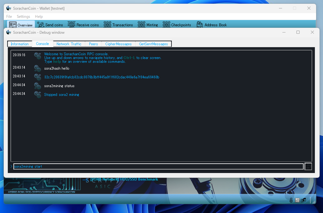 sora2mining:耐量子ハッシュ関数SORA2で固めたtestnet版ゆえに、そのCPUマイニングもSORA2です。